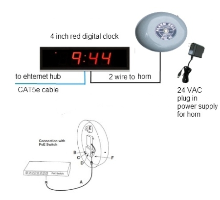 - Power over Ethernet (PoE) technology derives power and synchronized time updates from your existing network