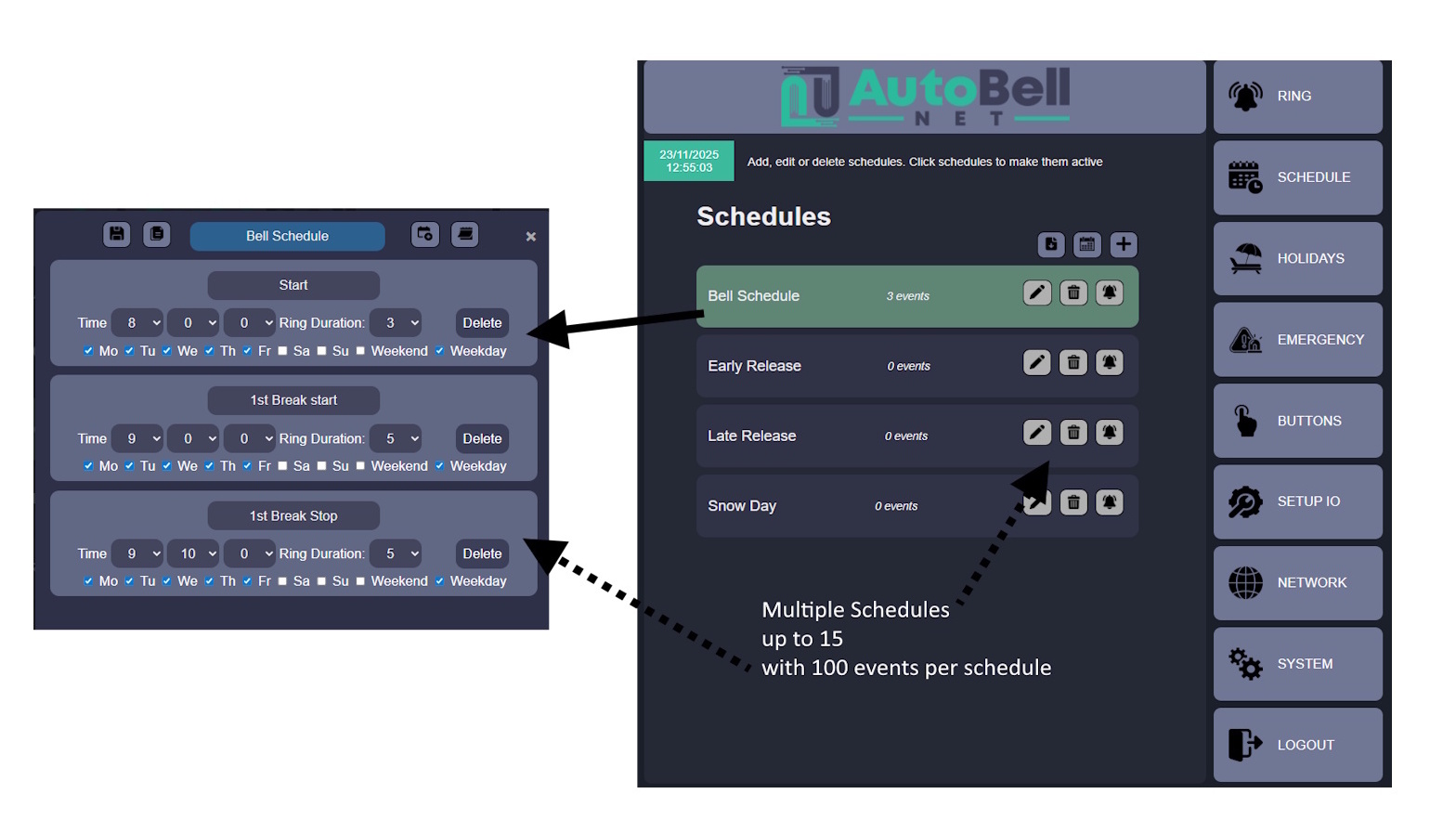 Sample User interface Screen (setting bell Schedule times)